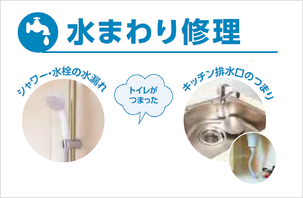 シャワーや水栓の水漏れ、トイレの水漏れやつまり、キッチンの水漏れなど